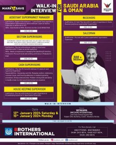 Embark on a career journey with Western International Group! Walk in for a golden opportunity in Saudi Arabia and Oman. Western International Group offers 300+ vacancies, including roles like Assistant Supermarket Manager, Section Supervisor, Cash Supervisor, Housekeeping Supervisor, Receivers, and Salesman.