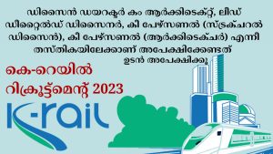 Golden opportunity for those who want to get job in K-Rail under Kerala Govt. Kerala Rail Development Corporation Limited has now invited applications from eligible candidates for the post of Design Director Cum Architect, Lead Detailed Designer (Structures), Key Personnel (Structural Design), Key Personnel (Architecture) and BIM Engineer/Manager.